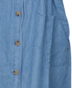 Τζιν φόρεμα midi με κοντό μανίκι, κουμπιά από πάνω μέχρι κάτω και δυο τσέπες.