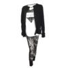 Σετ νυχτικό με στρινγκ σε μαύρο χρώμα με μπεζ λεπτομέρειες. Είναι κατάλληλο για μεγάλα νούμερα.
